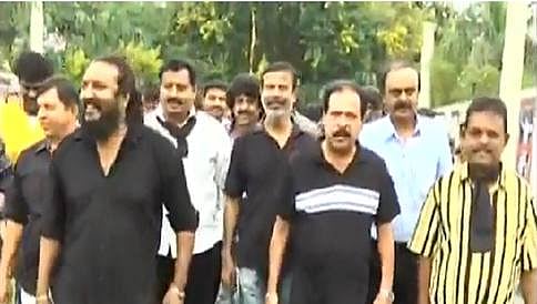 ಬೆಂಗಳೂರು: ಡಬ್ಬಿಂಗ್ ವಿರೋಧಿಸಿ ನಿರ್ದೇಶಕರು ಪ್ರತಿಭಟನೆ ನಡೆಸುತ್ತಿದ್ದಾರೆ. ಕಂಠೀರವ ಸ್ಟುಡಿಯೋದಲ್ಲಿರುವ ಡಾ. ರಾಜ್ ಕುಮಾರ್ ಸ್ಮಾರಕಕ್ಕೆ ಪೂಜೆ ಸಲ್ಲಿಸಿದ ನಂತರ ಧರಣಿ ಪ್ರಾರಂಭಿಸಿರುವ ಸ್ಯಾಂಡಲ್ ವುಡ್ ನಿರ್ದೇಶಕರು, ಕಪ್ಪು ಪಟ್ಟಿ ಧರಿಸಿ ರಾಜ್ ಸ್ಮಾರದ ಎದುರು ಮೌನ ಪ್ರತಿಭಟನೆ ನಡೆಸುತ್ತಿದ್ದಾರೆ.