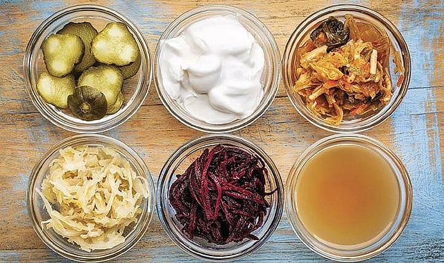 ಹುದುಗಿಸಿದ (ಫರ್ಮೆಂಟೆಡ್) ಆಹಾರಗಳು ಸಹ ಪ್ರೋಬಯೋಟಿಕ್ಸ್ ನ ಉತ್ತಮ ಮೂಲಗಳಾಗಿವೆ. ಇಡ್ಲಿ ಮತ್ತು ದೋಸೆ ಹಿಟ್ಟನ್ನು ಹುದುಗಿಸುವ ಪ್ರಕ್ರಿಯೆ ಇದಕ್ಕೆ ಉದಾಹರಣೆ. ಈ ಪ್ರಕ್ರಿಯೆಯಿಂದ ಧಾನ್ಯಗಳು ಮತ್ತು ಬೇಳೆಗಳು ಜೀರ್ಣವಾಗುವ ಸಾಮರ್ಥ್ಯ ಹೆಚ್ಚುತ್ತದೆ. ಈ ಆಹಾರದೊಂದಿಗೆ ದೇಹಕ್ಕೆ ಹೆಚ್ಚಿನ ಪೋಷಕಾಂಶಗಳು ದೊರಕುತ್ತವೆ.