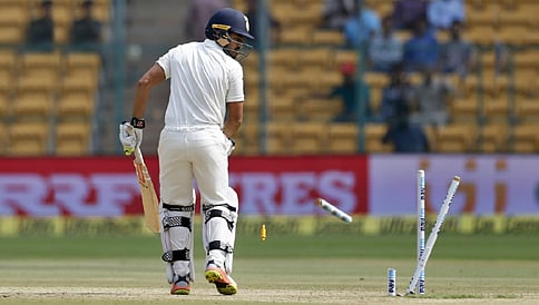 ಬೆಂಗಳೂರು: ಬೆಂಗಳೂರಿನ ಎಂ ಚಿನ್ನಸ್ವಾಮಿ ಕ್ರೀಡಾಂಗಣದಲ್ಲಿ ನಡೆಯುತ್ತಿರುವ ಎರಡನೇ ಟೆಸ್ಟ್ ಪಂದ್ಯದಲ್ಲೂ ಭಾರತ ಸೋಲಿನ ಸುಳಿಗೆ ಸಿಲುಕಿದ್ದು, ಆಸ್ಟ್ರೇಲಿಯಾಗೆ ಗೆಲ್ಲಲು ಕೇವಲ 188 ರನ್ ಗಳ ಅಲ್ಪ ಗುರಿ ನೀಡಿದೆ.