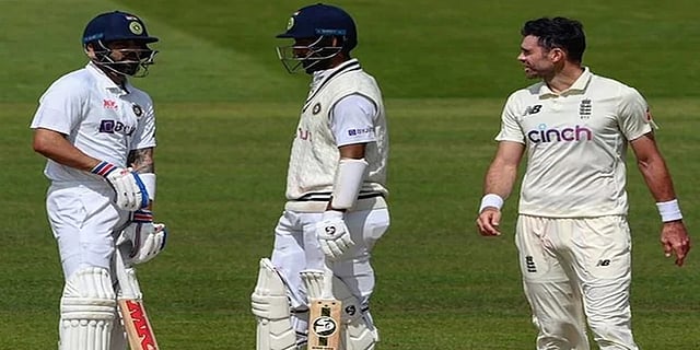 ಲಾರ್ಡ್ಸ್: ಭಾರತ ಮತ್ತು ಇಂಗ್ಲೆಂಡ್ ನಡುವೆ ಲಾರ್ಡ್ಸ್ ಕ್ರೀಡಾಂಗಣದಲ್ಲಿ ನಡೆಯುತ್ತಿರುವ ಎರಡನೇ ಟೆಸ್ಟ್ ಪಂದ್ಯದ ನಾಲ್ಕನೇ ದಿನದಾಟದ ಸಂದರ್ಭದಲ್ಲಿ ಟೀಂ ಇಂಡಿಯಾ ನಾಯಕ ವಿರಾಟ್ ಕೊಯ್ಲಿ ಹಾಗೂ ಇಂಗ್ಲೆಂಡ್ ವೇಗಿ ಜೇಮ್ಸ್ ಆಂಡರ್ಸನ್ ನಡುವೆ ಮಾತಿನ ಚಕಮಕಿ ನಡೆದಿದೆ. ಲಾರ್ಡ್ಸ್ ಕ್ರಿಡಾಂಗಣ ನಿನ್ನ ಮನೆಯ ಹಿತ್ತಲಲ್ಲ ಎಂದು ಆಂಡರ್ಸನ್ ಗೆ ಕೊಹ್ಲಿ ಹೇಳುವ ವಿಡಿಯೋ ಸಾಮಾಜಿಕ ಜಾಲತಾಣಗಳಲ್ಲಿ ವೈರಲ್ ಆಗಿತ್ತು.