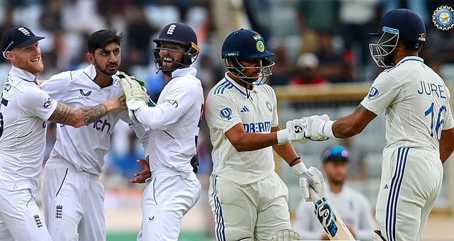 ಮೊದಲು ಬ್ಯಾಟಿಂಗ್ ಮಾಡಿದ್ದ ಇಂಗ್ಲೆಂಡ್ ತಂಡ ಮೊದಲ ಇನ್ನಿಂಗ್ಸ್ ನಲ್ಲಿ 353 ರನ್ ಗಳಿಗೆ ಆಲೌಟ್ ಆಗಿತ್ತು. ಈ ಸವಾಲನ್ನು ಬೆನ್ನು ಹತ್ತಿರುವ ಭಾರತ ತಂಡ ಆರಂಭದಿಂದಲೇ ನಿಯಮಿತವಾಗಿ ವಿಕೆಟ್ ಕಳೆದುಕೊಳ್ಳುತ್ತಾ ಸಾಗಿತು. ಭಾರತದ ಪರ ಆರಂಭಿಕ ಆಟಗಾರ ಜೈಸ್ವಾಲ್ (73 ರನ್), ಶುಭ್ ಮನ್ ಗಿಲ್ (38ರನ್) ಗಳಿಸಿ ಆಸರೆಯಾದರು. ಆದರೆ ನಾಯಕ ರೋಹಿತ್ ಶರ್ಮಾ 2ರನ್ ಗಳಿಸಿ ಔಟಾಗಿ ನಿರಾಶೆ ಮೂಡಿಸಿದರು. ರಜತ್ ಪಾಟಿದಾರ್ 17ರನ್ ಗಳಿಸಿ ಶೊಯೆಬ್ ಬಷೀರ್ ಗೆ ವಿಕೆಟ್ ಒಪ್ಪಸಿದರೆ, 12 ರನ್ ಗಳಿಸಿದ್ದ ರವೀಂದ್ರ ಜಡೇಜಾ ಕೂಡ ಅವರದ್ದೇ ಬೌಲಿಂಗ್ ನಲ್ಲಿ ನಿರ್ಗಮಿಸಿದರು.