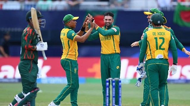 ನ್ಯೂಯಾರ್ಕ್: ಅಮೆರಿಕಾದ ನ್ಯೂಯಾರ್ಕ್ನಲ್ಲಿ ಸೋಮವಾರ ನಡೆದ 2024ರ ಐಸಿಸಿ ಟಿ20 ವಿಶ್ವಕಪ್ನ 21ನೇ ಪಂದ್ಯದಲ್ಲಿ ಬಾಂಗ್ಲಾದೇಶ ವಿರುದ್ಧ ದಕ್ಷಿಣ ಆಫ್ರಿಕಾ 4 ರನ್ ಗಳ ರೋಚಕ ಗೆಲುವು ಸಾಧಿಸಿದೆ. ಈ ಮೂಲಕ ಆಡಿದ ಮೂರು ಪಂದ್ಯಗಳಲ್ಲಿ ಮೂರು ಪಂದ್ಯಗಳನ್ನು ಗೆಲ್ಲುವ ಮೂಲಕ 6 ಅಂಕಗಳೊಂದಿಗೆ ದಕ್ಷಿಣ ಆಫ್ರಿಕಾ ತಂಡ ಸೂಪರ್ 8 ಹಂತಕ್ಕೆ ಪ್ರವೇಶವನ್ನು ಖಚಿತಪಡಿಸಿಕೊಂಡಿದೆ.