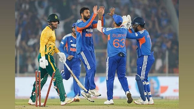 ಅಹ್ಮದಾಬಾದ್: ಗುಜರಾತ್ ನ ಅಹಮದಾಬಾದ್ ನಲ್ಲಿ ನಡೆದ 5ನೇ ಟಿ20 ಪಂದ್ಯದಲ್ಲಿ ಭಾರತ ಕ್ರಿಕೆಟ್ ತಂಡ ದಕ್ಷಿಣ ಆಫ್ರಿಕಾ ತಂಡದ ವಿರುದ್ಧ 30 ರನ್ ಗಳ ಭರ್ಜರಿ ಗೆಲುವು ಸಾಧಿಸಿದೆ. ಈ ಗೆಲುವಿನ ಮೂಲಕ ಭಾರತ ಸರಣಿಯಲ್ಲಿ 3-1 ಅಂತರದಿಂದ ಸರಣಿ ಗೆದ್ದಿದೆ.