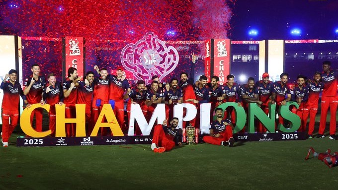 ಅಹ್ಮದಾಬಾದ್ ನ ನರೇಂದ್ರ ಮೋದಿ ಕ್ರೀಡಾಂಗಣದಲ್ಲಿ ನಡೆದ ಫೈನಲ್ ಪಂದ್ಯದಲ್ಲಿ ಪಂಜಾಬ್ ಕಿಂಗ್ಸ್ ತಂಡವನ್ನು 6 ರನ್ ಗಳ ಅಂತರದಲ್ಲಿ ಮಣಿಸಿದ ರಾಯಲ್ ಚಾಲೆಂಜರ್ಸ್ ಬೆಂಗಳೂರು ತಂಡ 18 ವರ್ಷಗಳ ಬಳಿಕ ಮೊದಲ ಬಾರಿಗೆ ಚಾಂಪಿಯನ್ ಪಟ್ಟಕ್ಕೇರಿದೆ.