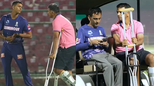 ಇನ್ನು ದ್ರಾವಿಡ್ ಗುಣಮುಖರಾಗುವುದಿಲ್ಲ. ಹೀಗಾಗಿ ಹಾಲಿ ವರ್ಷದ ಐಪಿಎಲ್ ಟೂರ್ನಿಯಲ್ಲಿ ಅವರ ಸಲಹೆ ತರಬೇತಿ ಸಿಗುವುದಿಲ್ಲ ಎಂದು ರಾಜಸ್ತಾನ ರಾಯಲ್ಸ್ ತಂಡ ಭಾವಿಸಿತ್ತು. ಆದರೆ ಅಚ್ಚರಿ ಎಂಬಂತೆ ಇದೀಗ ರಾಹುಲ್ ದ್ರಾವಿಡ್ ಮೈದಾನಕ್ಕೆ ಆಗಮಿಸಿದ್ದಾರೆ. ಅಂದು ಎದ್ದು ನಿಲ್ಲಲೂ ಸಾಧ್ಯವಾಗದೇ ಅವರು ಕ್ರಚಸ್ ಅವಲಂಬಿಸಿದ್ದ ದ್ರಾವಿಡ್ ಇಂದು ಅದೇ ಕ್ರಚಸ್ ನೆರವಿನಿಂದ ಮೈದಾನಕ್ಕೆ ಬಂದಿದ್ದಾರೆ.