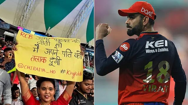 ಹೌದು. ಐಪಿಎಲ್ನಲ್ಲಿ ಇದುವರೆಗೆ ಪ್ರಶಸ್ತಿ ಗೆಲ್ಲದಿದ್ದರೂ ಆರ್ಸಿಬಿ ಅತಿ ಹೆಚ್ಚಿನ ಸಂಖ್ಯೆಯ ಅಭಿಮಾನಿಗಳನ್ನು ಹೊಂದಿದೆ. ಇದೀಗ ತಂಡ ಫೈನಲ್ಗೆ ತಲುಪಿದ್ದು, ಈ ವರ್ಷ ಟ್ರೋಫಿ ಗೆಲ್ಲುವ ಮೂಲಕ ಆರ್ಸಿಬಿ ಪ್ರಶಸ್ತಿ ಬರ ನೀಗಿಸದಿದ್ದರೆ ಪತಿಗೆ ವಿಚ್ಛೇದನ ನೀಡುವುದಾಗಿ ಮಹಿಳೆಯೊಬ್ಬರು ಸ್ಟೇಡಿಯಂನಲ್ಲಿ ಭಿತ್ತಿಪತ್ರ ಹಿಡಿದು ನಿಂತಿರುವುದು ಕಂಡುಬಂದಿದೆ.