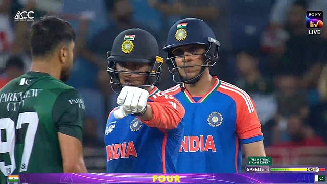 ಭಾರತದ ಚೇಸಿಂಗ್ ವೇಳೆ ಭರ್ಜರಿಯಾಗಿ ಬ್ಯಾಟಿಂಗ್ ಮಾಡುತ್ತಿದ್ದ ಅಭಿಷೇಕ್ ಶರ್ಮಾ ಮತ್ತು ಶುಭ್ ಮನ್ ಗಿಲ್ ರನ್ನು ಪಾಕಿಸ್ತಾನ ವೇಗಿ ಹ್ಯಾರಿಸ್ ರೌಫ್ ಕೆಣಕಿದ್ದು, ಈ ವೇಳೆ ಅಭಿಷೇಕ್ ಶರ್ಮಾ ಖಾರವಾಗಿ ಉತ್ತರಿಸಿರುವ ವಿಡಿಯೋ ಸಾಮಾಜಿಕ ಜಾಲತಾಣಗಳಲ್ಲಿ ವ್ಯಾಪಕ ವೈರಲ್ ಆಗುತ್ತಿದೆ.