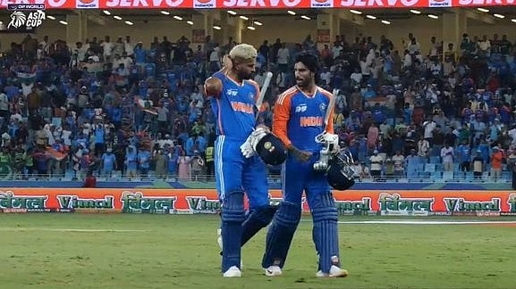 ಆ ಮೂಲಕ ಭಾರತ ಪಾಕ್ ವಿರುದ್ಧ ಭರ್ಜರಿ ಜಯ ದಾಖಲಿಸಿತು. ಅತ್ತ ತಂಡ ಗೆಲವು ದಾಖಲಿಸುತ್ತಲೇ ಕ್ರೀಸ್ ನಲ್ಲಿದ್ದ ಭಾರತದ ಬ್ಯಾಟರ್ ಗಳಾದ ತಿಲಕ್ ವರ್ಮಾ ಮತ್ತು ಹಾರ್ದಿಕ್ ಪಾಂಡ್ಯಾ ಪರಸ್ಪರ ತಾವೇ ಹಸ್ತಲಾಘವ ಮಾಡಿಕೊಂಡು ತಬ್ಬಿಕೊಂಡು ಬಳಿಕ ನೇರವಾಗಿ ಭಾರತದ ಡ್ರೆಸಿಂಗ್ ರೂಂನತ್ತ ಹೆಜ್ಜೆ ಹಾಕಿದರು.