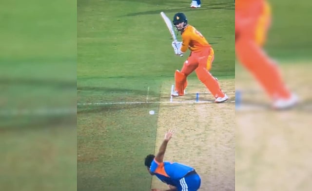 ಗುರುವಾರ ಜಿಂಬಾಬ್ವೆ ವಿರುದ್ಧದ ಟಿ20 ವಿಶ್ವಕಪ್ ಸೂಪರ್ 8 ಪಂದ್ಯದಲ್ಲಿ ಭಾರತೀಯ ಕ್ರಿಕೆಟ್ ತಂಡದ ಆಲ್ರೌಂಡರ್ ಶಿವಂ ದುಬೆ ಎಸೆದ ಎಸೆತವೊಂದು ವಿಚಿತ್ರವಾದ ನೋ-ಬಾಲ್ ಆಗಿದ್ದು, ಅಭಿಮಾನಿಗಳನ್ನು ಕೆರಳಿಸಿದೆ. ಜಿಂಬಾಬ್ವೆ ಇನಿಂಗ್ಸ್ನ 15ನೇ ಓವರ್ನಲ್ಲಿ ಬ್ರಿಯಾನ್ ಬೆನೆಟ್ಗೆ ವೈಡ್ ಔಟ್ಸೈಡ್ ಆಫ್-ಸ್ಟಂಪ್ ಬೌಲಿಂಗ್ ಮಾಡುವ ದುಬೆ ಅವರ ತಂತ್ರವು ದುಬಾರಿಯಾಗಿ ಪರಿಣಮಿಸಿತು.