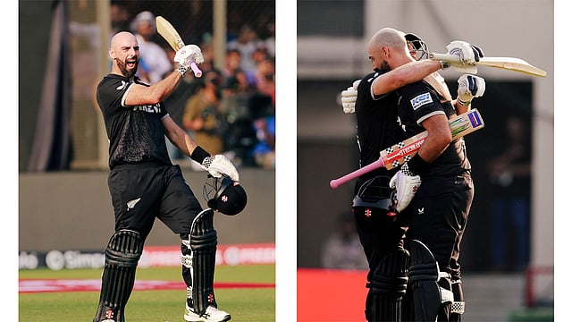 ಇನ್ನು ಈ ಪಂದ್ಯದಲ್ಲಿ ನ್ಯೂಜಿಲೆಂಡ್ ಇಬ್ಬರು ಸ್ಟಾರ್ ಆಟಗಾರರು ಶತಕ ಸಿಡಿಸಿದರು. ಕಳೆದ ಪಂದ್ಯದ ಹೀರೋ ಡರಿಲ್ ಮಿಚೆಲ್ ಮತ್ತು ಗ್ಲೇನ್ ಫಿಲಿಪ್ಸ್ ಇಬ್ಬರೂ ಶತಕ ಸಿಡಿಸಿ ಸಂಭ್ರಮಿಸಿದರು. ಪ್ರಮುಖವಾಗಿ ಆರಂಭಿಕ ಆಘಾತ ಎದುರಿಸಿದ್ದ ನ್ಯೂಜಿಲೆಂಡ್ ಇನ್ನಿಂಗ್ಸ್ ಗೆ ಜೀವ ತುಂಬಿದ್ದು ಡರಿಲ್ ಮಿಚೆಲ್. ಕೇವಲ 131 ಎಸೆತಗಳಲ್ಲಿ 3 ಸಿಕ್ಸರ್ ಮತ್ತು 15 ಬೌಂಡರಿಗಳ ಸಹಿತ 137 ರನ್ ಸಿಡಿಸಿದರು.