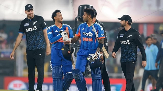 ಬರ್ಸಪಾರ ಕ್ರೀಡಾಂಗಣದಲ್ಲಿ ಮೊದಲು ಬ್ಯಾಟಿಂಗ್ ಮಾಡಿದ ನ್ಯೂಜಿಲೆಂಡ್ 153 ರನ್ ಗಳಿಸಿತ್ತು. ಕಿವೀಸ್ ಪರ ಗ್ಲೇನ್ ಪಿಲಿಪ್ಸ್ 48, ಮಾರ್ಕ್ ಚಪ್ಮನ್ 32, ಮಿಚೆಲ್ ಸ್ಯಾಂಟ್ನರ್ 27 ರನ್ ಗಳಿಸಿದ್ದಾರೆ. ಭಾರತದ ಪರ ಜಸ್ ಪ್ರೀತ್ ಬುಮ್ರಾ 3, ಹಾರ್ದಿಕ್ ಪಾಂಡ್ಯ, ರವಿ ಬಿಷ್ಣೋಯ್ ತಲಾ 2 ವಿಕೆಟ್ ಪಡೆದರೇ ಹರ್ಷಿತ್ ರಾಣಾ 1 ವಿಕೆಟ್ ಪಡೆದರು.