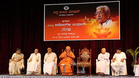 ಪರಿಷತ್ನ ಮಾಜಿ ಕೇಂದ್ರಿಯ ಉಪಾಧ್ಯಕ್ಷ ವೈ.ಕೆ.ರಾಘವೇಂದ್ರ ರಾವ್ ಮಾತನಾಡಿ, ವಿಎಚ್ಪಿ ಮೂಲಕ ದೇಶದಲ್ಲಿ ಹರಿದು ಹಂಚಿಹೋಗಿದ್ದ ಸಾಧು, ಸಂತರನ್ನು ಒಂದೇ ವೇದಿಕೆಯಡಿ ಕರೆತಂದು ಭವ್ಯವಾದ ರಾಮಮಂದಿರ ನಿರ್ಮಾಣಕ್ಕೆ ಒಮ್ಮತ ನಿರ್ಣಯವನ್ನು ಸಿಂಘಾಲ್ ಅವರು 1989ರಲ್ಲಿ ಉಡುಪಿಯಲ್ಲಿ ಕೈಗೊಂಡರು. ನಂತರ ಅಯೋಧ್ಯೆಯಲ್ಲಿ ರಾಮ ಮಂದಿರ ನಿರ್ಮಾಣಕ್ಕಾಗಿ ದೇಶದ ಪ್ರತಿಗ್ರಾಮದಿಂದ ಇಟ್ಟಿಗೆ ತರಿಸುವ ಚಳವಳಿ ಕೈಗೊಂಡು ಇಟ್ಟಿಗೆ ಸಂಗ್ರಹಿಸಿದರು ಎಂದು ಹೇಳಿದರು. ಕಾರ್ಯಕ್ರಮದಲ್ಲಿ ವಿ.ನಾಗರಾಜ್, ಬೇಲಿಮಠದ ಶಿವರುದ್ರ ಮಹಾ ಸ್ವಾಮೀಜಿ, ಭಾಗವಹಿಸಿದ್ದರು.