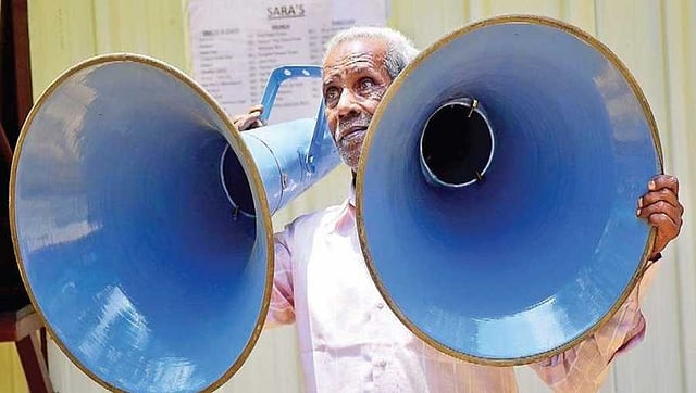 ಬೆಂಗಳೂರಿನ ಮತ ಎಣಿಕೆ ಕೇಂದ್ರದಲ್ಲಿ ಇಡಲು ಕಾರ್ಮಿಕರೊಬ್ಬರು ಧ್ವನಿವರ್ಧಕವನ್ನು ಒಯ್ಯುತ್ತಿರುವುದು