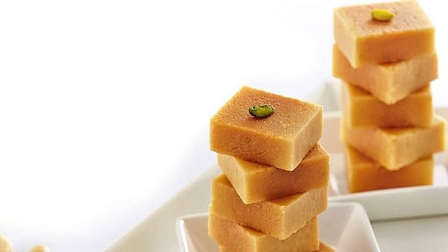 ಮತ್ತೊಂದು ಪಾತ್ರೆಯಲ್ಲಿ ಕಡಲೆ ಹಿಟ್ಟನ್ನು ಸ್ವಲ್ಪ ತುಪ್ಪದೊಂದಿಗೆ ಕಡಿಮೆ ಉರಿಯಲ್ಲಿ ಹುರಿಯಿರಿ. ಹಸಿ ವಾಸನೆ ಹೋಗುವವರೆಗೆ ಹುರಿಯಬೇಕು, (ಬಣ್ಣ ಹೆಚ್ಚು ಬದಲಾಗಬಾರದು).