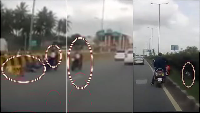ಅಪಘಾತದ ವೇಳೆ ಕೆಳಗೆ ಬಿದ್ದಿದ್ದ ದಂಪತಿಗಳ ಪರಿಸ್ಥಿತಿ ಗಂಭೀರವಾಗಿದ್ದು ಅವರನ್ನು ಸ್ಥಳೀಯ ಆಸ್ಪತ್ರೆಗೆ ದಾಖಲಿಸಲಾಗಿದೆ. ಈ ಭೀಕರ ಅಪಘಾತದ ವಿಡಿಯೋ ಈಗ ಸಾಮಾಜಿಕ ಜಾಲತಾಣದಲ್ಲಿ ವೈರಲ್ ಆಗಿದೆ.