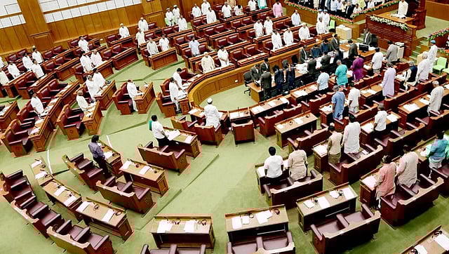 ಇದಕ್ಕೆ ಪ್ರತಿಯಾಗಿ ಕಾಂಗ್ರೆಸ್ ಕೆಲವು ಸದಸ್ಯರು ಘೋಷಣೆ ಕೂಗಿದರು, ಕೆಲ ನಿಮಿಷಗಳ ಕಾಲ ನಂತರ ಸಭಾಪತಿ ಪ್ರತಾಪಚಂದ್ರಶೆಟ್ಟಿ 12 ಗಂಟೆವರೆಗೆ ಕಲಾಪ ಮುಂದೂಡಿದರು. ಮಧ್ಯಾಹ್ನ 12.15ಕ್ಕೆ ಕಲಾಪ ಆರಂಭವಾಗುತ್ತಿದ್ದಂತೆ ಬಿಜೆಪಿ ಸದಸ್ಯರು ಸಭಾಪತಿಗಳ ಮುಂದೆ ಬಂದು ಘೋಷಣೆ ಕೂಗುತ್ತಾ ಧರಣೆ ಮುಂದುವರೆಸಿದರು.