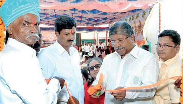 ಗೋಕಾಕ್ ತಾಲೂಕಿನ ತವಗ ಗ್ರಾಮದ ದೇವಾಲಯ ಉದ್ಘಾಟನೆ ಮಾಡುತ್ತಿರುವ ಮಹಾರಾಷ್ಟ್ರ ಸಚಿವ ಚಂದ್ರಕಾಂತ್ ಪಾಟೀಲ್