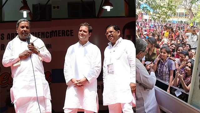 ವಿದ್ಯಾರ್ಥಿಗಳೊಂದಿಗೆ ಸಂವಾದದಲ್ಲಿ ಸಿಎಂ ಸಿದ್ದರಾಮಯ್ಯ ಮತ್ತು ರಾಹುಲ್ ಗಾಂಧಿ (ಚಿತ್ರಕೃಪೆ: ಕೆಪಿಸಿಸಿ ಕರ್ನಾಟಕ ಟ್ವಿಟರ್)