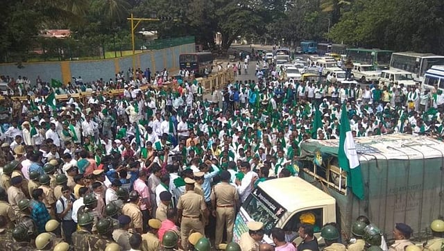 ರಾಜ್ಯದ ವಿವಿಧ ಜಿಲ್ಲೆಗಳಿಂದ ರೈತರು ಬೆಂಗಳೂರಿಗೆ ಆಗಮಿಸಿ ಪ್ರತಿಭಟನೆ ನಡೆಸುತ್ತಿದ್ದಾರೆ. ಪ್ರತಿಭಟನೆಯಿಂದಾಗಿ, ಶೇಷಾದ್ರಿ ರಸ್ತೆ ಸಂಪೂರ್ಣ ಬಂದ್ ಆಗಿದ್ದು, ಪೊಲೀಸರು ಬಿಗಿ ಬಂದೋಬಸ್ತ್ ಏರ್ಪಡಿಸಿದ್ದಾರೆ.