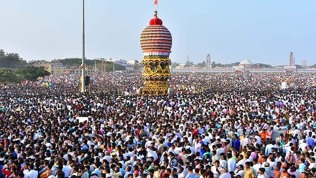 ಕೊಪ್ಪಳ: ಒಂದೆಡೆ ಲಕ್ಷ ಲಕ್ಷ ಭಕ್ತರ ಜನಸಾಗರದ ಮಧ್ಯೆ ರಥೋತ್ಸವಕ್ಕೆ ಚಾಲನೆ ನೀಡುತ್ತಿರುವ ಅಂತರಾಷ್ಟ್ರೀಯ ಕ್ರೀಡಾಪಟು ಡಾ.ಮಾಲತಿ ಹೊಳ್ಳ.. ಇನ್ನೊಂದಡೆ ರಥೋತ್ಸವದಲ್ಲಿ ಪಾಲ್ಗೊಂಡ ರಾಜಕೀಯ ನಾಯಕರು.. ಮತ್ತೊಂದಡೆ ಜಾತ್ರೆಗೆ ಬಂದ ಭಕ್ತರ ಹಸಿವು ನಿಗಿಸಲು ಸಿದ್ದವಾದ ತರಹೇವಾರಿ ಭೋಜನದ ದೃಶ್ಯ. ಇವೆಲ್ಲ ದೃಶ್ಯಗಳು ಕಂಡು ಬಂದದ್ದು ಕೊಪ್ಪಳದಲ್ಲಿ. ಹೌದು ದಕ್ಷಿಣ ಭಾರತದ ಕುಂಭಮೇಳ ಎಂದೇ ಪ್ರಸಿದ್ಧಿ ಪಡೆದ ಕೊಪ್ಪಳದ ಗವಿಸಿದ್ದೇಶ್ವರ ಜಾತ್ರಾ ಮಹೋತ್ಸವ ಇಂದು ನೆರವೆರಿತು.
