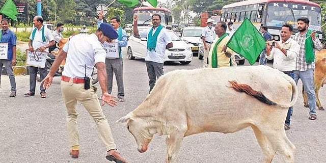 ಸಂಯುಕ್ತ ಕಿಸಾನ್ ಮೋರ್ಚಾದ ಬಂದ್'ಗೆ ಕರೆ ನೀಡಿದ ಹಿನ್ನೆಲೆಯಲ್ಲಿ ಶ್ರೀರಂಗಪಟ್ಟಣ ಬಳಿ ಮೈಸೂರು-ಬೆಂಗಳೂರು ಹೆದ್ದಾರಿಯಲ್ಲಿ ಎತ್ತಿನ ಬಂಡಿ, ಜಾನುವಾರು, ಟ್ರ್ಯಾಕ್ಟರ್'ಗಳೊಂದಿಗೆ ರಸ್ತೆ ತಡೆ ನಡೆಸಿದರು. ಈ ವೇಳೆ ಆಂಬ್ಯುಲೆನ್ಸ್ಗಳಿಗೆ ಮಾತ್ರ ಸಂಚಾರಕ್ಕೆ ಅವಕಾಶ ಕಲ್ಪಿಸಲಾಗಿತ್ತು.