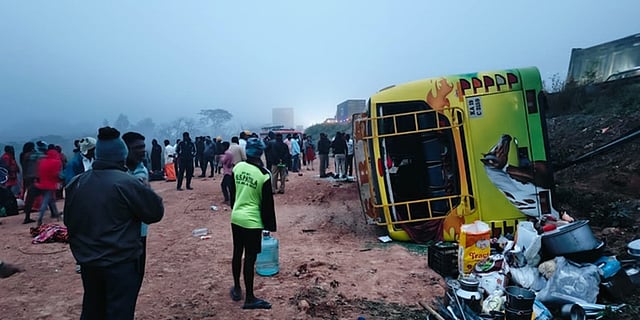 ನಗರದ ಹೊರವಲಯದ ಸರ್ಜಾಪುರ-ಅತ್ತಿಬೆಲೆ ರಸ್ತೆಯ ಬಿದರಗುಪ್ಪೆ ಕೆರೆ ಬಳಿ ಶನಿವಾರ ಈ ಅಪಘಾತ ನಡೆದಿದೆ. ಬಸ್ ಚಾಲಕ ಸಲೀಂ ಉಲ್ಲಾನನ್ನು ಪೊಲೀಸರು ಬಂಧಿಸಿದ್ದಾರೆ. ಬೆಳಗ್ಗೆ 6 ಗಂಟೆ ಸುಮಾರಿಗೆ ಅಪಘಾತ ಸಂಭವಿಸಿದಾಗ ಬಸ್ನಲ್ಲಿ ಸುಮಾರು 50 ಮಂದಿ ಇದ್ದರು ಎನ್ನಲಾಗಿದೆ.