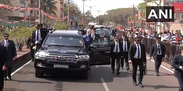ಬೆಳಗಾವಿ: ಪ್ರಧಾನಿ ನರೇಂದ್ರ ಮೋದಿ ಬೆಳಗಾವಿಯಲ್ಲಿ ರೋಡ್ ಶೋ ನಡೆಸಿದರು. ಚೆನ್ನಮ್ಮ ವೃತ್ತದಿಂದ ಮಾಲಿನಿ ಸಿಟಿಯವರೆಗೂ ಸುಮಾರು 10.7 ಕಿ.ಮೀ. ದೂರದವರೆಗೂ ಪೊಲೀಸ್ ಬಿಗಿ ಭದ್ರತೆಯಲ್ಲಿ ಮೋದಿ ರೋಡ್ ಶೋ ನಲ್ಲಿ ಪಾಲ್ಗೊಂಡರು.