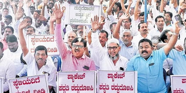 ತೋಟಗಾರಿಕಾ ಸಚಿವ ಮುನಿರತ್ನ ಅವರು ಕ್ರಿಮಿನಲ್ ಮಾನನಷ್ಟ ಮೊಕದ್ದಮೆ ದಾಖಲಿಸಿದ ನಂತರ ಕರ್ನಾಟಕ ಗುತ್ತಿಗೆದಾರರ ಸಂಘದ ಅಧ್ಯಕ್ಷ ಡಿ ಕೆಂಪಣ್ಣ ಮತ್ತು ಇತರ ನಾಲ್ವರನ್ನು ಬಂಧನಕ್ಕೊಳಪಡಿಸಲಾಗಿದೆ. ಈ ಹಿನ್ನೆಲೆಯಲ್ಲಿ ಏಕತೆ ಹಾಗೂ ಶಕ್ತಿಯ ಸಾಂಕೇತಿಕವಾಗಿ ಗುತ್ತಿಗೆದಾರರು ಪ್ರತಿಭಟನೆ ನಡೆಸಿದರು.