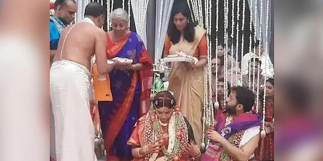 ಕರ್ನಾಟಕದಲ್ಲಿ ನಡೆದ ಕೇಂದ್ರ ವಿತ್ತ ಸಚಿವೆಯ ಮದುವೆಯಲ್ಲಿ ಎರಡು ಕುಟುಂಬಗಳ ಆಪ್ತರು ಮಾತ್ರ ಭಾಗವಹಿಸಿದ್ದರು. ಹಿಂದೂ ವಿವಾಹ ಸಂಪ್ರದಾಯದಂತೆ ನಡೆದ ವಿವಾಹದ ವೀಡಿಯೋ ಉಡುಪಿ ಅದಮಾರು ಮಠದ ಫೇಸ್ ಬುಕ್ ಖಾತೆಯಲ್ಲಿ ಶೇರ್ ಮಾಡಲಾಗಿತ್ತು.