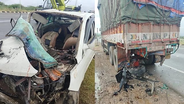 ಕಾರು 7 ಪ್ರಯಾಣಿಕರನ್ನು ಹೊತ್ತೊಯ್ಯುತ್ತಿದ್ದಾಗ ಟ್ರಕ್ಗೆ ಡಿಕ್ಕಿ ಹೊಡೆದಿದೆ. ಕಾರು ಹೊಸಪೇಟೆಯಿಂದ ತುಮಕೂರು ಕಡೆಗೆ ಚಲಿಸುತ್ತಿತ್ತು ಎಂದು ಪೊಲೀಸ್ ವರಿಷ್ಠಾಧಿಕಾರಿ ಧರ್ಮೇಂದ್ರ ಕುಮಾರ್ ಮೀನಾ ತಿಳಿಸಿದ್ದಾರೆ.