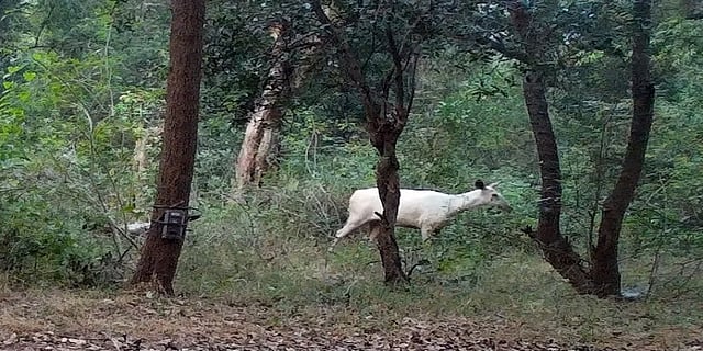 ಚಿರತೆಗಳ ಬಗ್ಗೆ ಅಧ್ಯಯನ ನಡೆಸುತ್ತಿರುವ ವನ್ಯಜೀವಿ ತಜ್ಞ ಸಂಜಯ್ ಗುಬ್ಬಿ ಮತ್ತು ತಂಡ ಅಳವಡಿಸಿದ್ದ ಕ್ಯಾಮೆರಾ ಟ್ರ್ಯಾಪ್ನಲ್ಲಿ ಅಪರೂಪದ ಬಿಳಿಬಣ್ಣದ ಹೆಣ್ಣು ಕಡವೆಯ ಚಿತ್ರ ಸೆರೆಯಾಗಿದೆ.