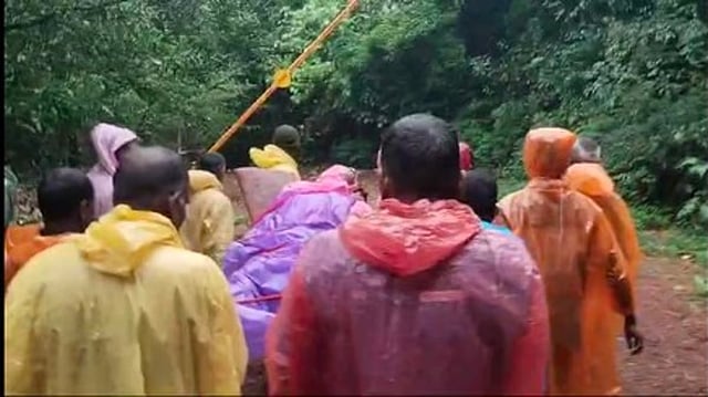 ಗ್ರಾಮಸ್ಥರು ಹೇಳುವುದೇನು?: ಗ್ರಾಮಸ್ಥರು ಮಹಿಳೆಗೆ ಅಮ್ಗಾಂವ್ನಲ್ಲಿ ಚಿಕಿತ್ಸೆ ನೀಡಲು ಪ್ರಯತ್ನಿಸಿದರು, ಆದರೆ ಆಕೆಯ ಸ್ಥಿತಿ ಹದಗೆಡುತ್ತಿದ್ದಂತೆ ಗ್ರಾಮಸ್ಥರೇ ಮರದ ಕೋಲುಗಳಿಂದ ಸ್ಟ್ರೆಚರ್ ನ್ನು ನಿರ್ಮಿಸಿ ಅಮ್ಗಾಂವ್ ಅರಣ್ಯದ ಪ್ರತಿಕೂಲ ಹವಾಮಾನದ ನಡುವೆ ಸುಮಾರು 25 ಗ್ರಾಮಸ್ಥರು ಕೆಸರು ಮತ್ತು ಸವಾಲಿನ ಭೂಪ್ರದೇಶದ ಮೂಲಕ ಸುಮಾರು 10 ಕಿಲೋ ಮೀಟರ್ ವರೆಗೆ ಕರೆತಂದರು.