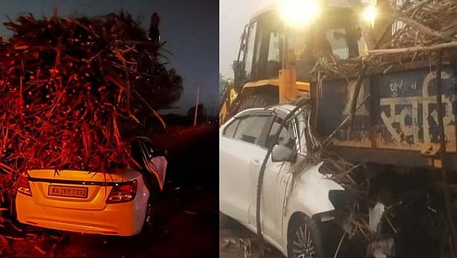 ಕಬ್ಬು ಹೊತ್ತೊಯ್ಯುತ್ತಿದ್ದ ಟ್ರ್ಯಾಕ್ಟರ್ಗೆ ಕಾರು ರಭಸವಾಗಿ ಹಿಂದಿನಿಂದ ಡಿಕ್ಕಿ ಹೊಡೆದಿದೆ. ಜಮಖಂಡಿ ಗ್ರಾಮೀಣ ಪೊಲೀಸರು ಪರಿಶೀಲನೆ ಮಾಡುತ್ತಿದ್ದಾರೆ.
