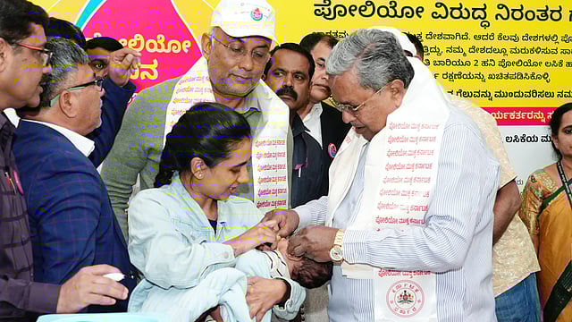 ಬೆಂಗಳೂರು: ಇಂದಿನಿಂದ ರಾಜ್ಯಾದ್ಯಂತ 'ರಾಷ್ಟ್ರೀಯ ಪಲ್ಸ್ ಪೋಲಿಯೋ' ಲಸಿಕಾ ಕಾರ್ಯಕ್ರಮ ನಡೆಯುತ್ತಿದ್ದು, ಮುಖ್ಯಮಂತ್ರಿ ಸಿದ್ದರಾಮಯ್ಯ ಅಭಿಯಾನಕ್ಕೆ ಚಾಲನೆ ನೀಡಿದರು.