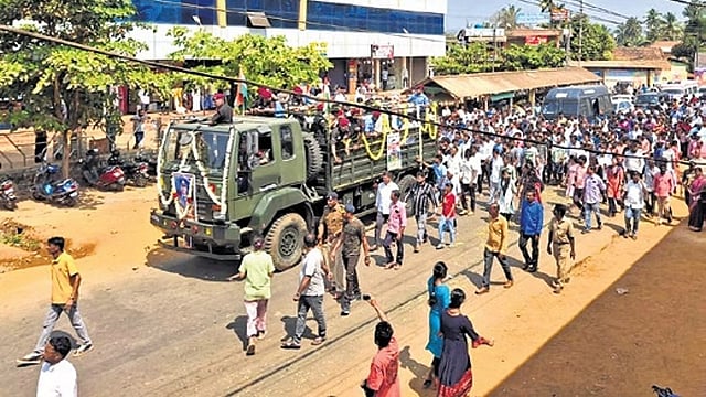 ಪಾರ್ಥಿವ ಶರೀರವನ್ನು ಬೆಳಿಗ್ಗೆ ಶಿವಮೊಗ್ಗ ನಗರಕ್ಕೆ ತರಲಾಯಿತು. ಈ ವೇಳೆ ಸಂಸದ ಬಿ.ವೈ. ರಾಘವೇಂದ್ರ ಮತ್ತು ಶಾಸಕ ಎಸ್.ಎನ್. ಚನ್ನಬಸಪ್ಪ ಅಂತಿಮ ನಮನ ಸಲ್ಲಿಸಿದರು, ನಂತರ ಬೆಳಿಗ್ಗೆ 11.30ಕ್ಕೆ ಸೇನಾ ವಾಹನದಲ್ಲಿ ಹೊಸನಗರಕ್ಕೆ ತರಲಾಯಿತು. ನಂತರ ಹೊಸನಗರಕ್ಕೆ ಕರೆದೊಯ್ಯಲಾಯಿತು. ಬಳಿಕ, ಊರಿನ ಪ್ರಮುಖ ರಸ್ತೆಗಳಲ್ಲಿ ಪಾರ್ಥಿವ ಶರೀರದ ಮೆರವಣಿಗೆ ನಡೆಸಲಾಯಿತು. ಸುಮಾರು 12 ಕಿ.ಮೀ.ಮೆರವಮಿಗೆಯಲ್ಲಿ ಸಾಗಿತು.