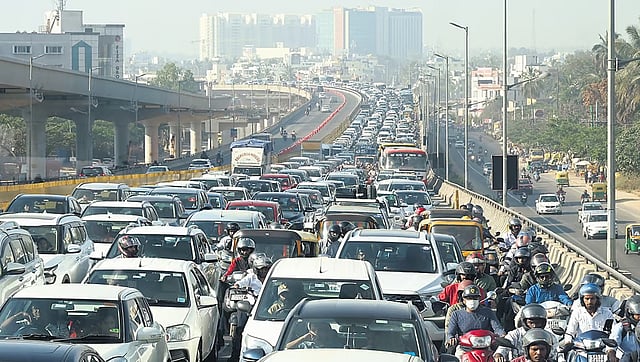 ಬೆಂಗಳೂರು: 2025ರ ಏರೋ ಇಂಡಿಯಾ ನಾಲ್ಕನೇ ದಿನದ ಪ್ರದರ್ಶನ ಬೆಂಗಳೂರನ್ನು ಅಕ್ಷರಶಃ ಸ್ತಬ್ಧಗೊಳಿಸಿತು, ಕೆಂಪೇಗೌಡ ಅಂತರಾಷ್ಟ್ರೀಯ ವಿಮಾನ ನಿಲ್ದಾಣಕ್ಕೆ ಹೋಗುವ ಬಳ್ಳಾರಿ ರಸ್ತೆಯಲ್ಲಿ ಭಾರಿ ಟ್ರಾಫಿಕ್ ಜಾಮ್ ಉಂಟಾಗಿತ್ತು, ಸುಮಾರು ನಾಲ್ಕು ಕಿಲೋಮೀಟರ್ ಉದ್ದದವರೆಗೂ ಸಾವಿರಾರು ವಾಹನಗಳು ಸಿಕ್ಕಿಹಾಕಿಕೊಂಡವು.
