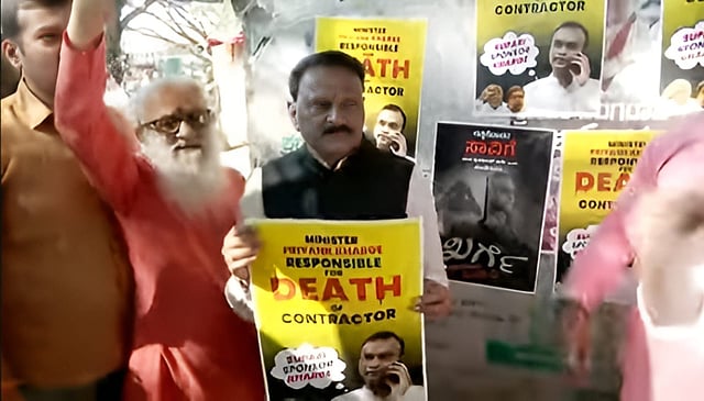 ಕಳೆದ ವಾರ ಬೀದರ್ನಲ್ಲಿ ಗುತ್ತಿಗೆದಾರ ಸಚಿನ್ ಮಾನಪ್ಪ ಆತ್ಮಹತ್ಯೆ ಪ್ರಕರಣಕ್ಕೆ ಸಂಬಂಧಿಸಿದಂತೆ ಗ್ರಾಮೀಣಾಭಿವೃದ್ಧಿ ಮತ್ತು ಪಂಚಾಯತ್ ರಾಜ್ ಸಚಿವ ಪ್ರಿಯಾಂಕ ಖರ್ಗೆ ರಾಜೀನಾಮೆಗೆ ಒತ್ತಾಯಿಸಿ ಬಿಜೆಪಿ ಮುಖಂಡರು ಮಂಗಳವಾರ ಬೆಂಗಳೂರಿನ ರೇಸ್ ಕೋರ್ಸ್ ರಸ್ತೆ ಜಂಕ್ಷನ್ನಲ್ಲಿ ಪ್ರತಿಭಟನೆ ನಡೆಸಿ, ಪೋಸ್ಟರ್ ಅಂಟಿಸಿ ಸರ್ಕಾರದ ವಿರುದ್ಧ ಆಕ್ರೋಶ ವ್ಯಕ್ತಪಡಿಸಿದ್ದರು.
