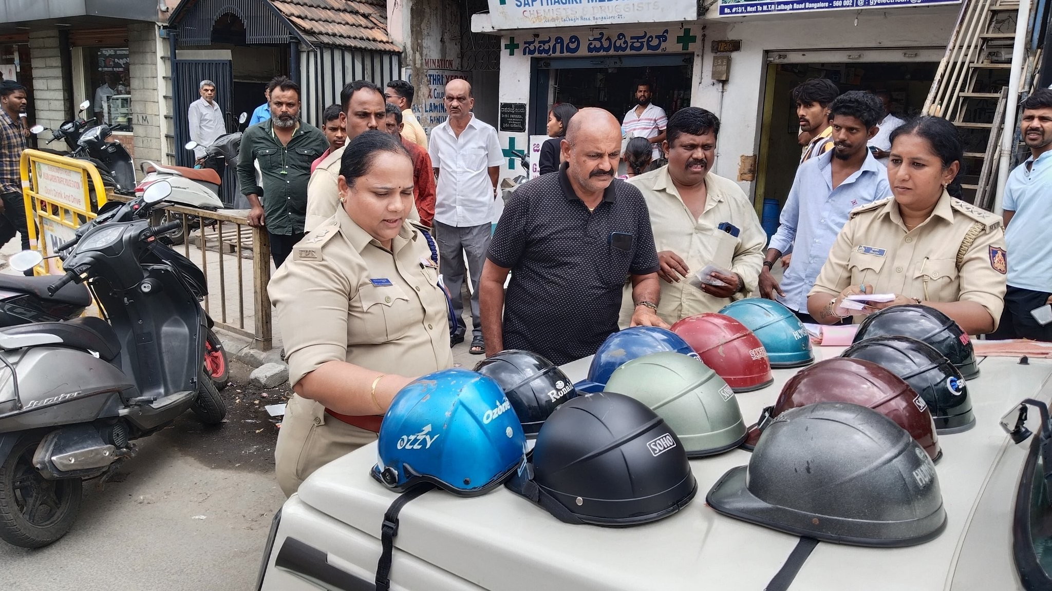 ಬೆಂಗಳೂರಿನ ವಿವಿಧ ಪ್ರದೇಶಗಳಲ್ಲಿ ಅಧಿಕಾರಿಗಳು ಹೆಲ್ಮೆಟ್ ಅಂಗಡಿಗಳ ಮೇಲೆ ದಾಳಿ ಮಾಡಿ ಕಳಪೆ ಗುಣಮಟ್ಟದ ಹೆಲ್ಮೆಟ್ ಗಳನ್ನು ಮಾರಾಟ ಮಾಡುತ್ತಿದ್ದ ಅಂಗಡಿ ಮಾಲೀಕರ ವಿರುದ್ಧ ಕಠಿಣ ಕ್ರಮ ಕೈಗೊಂಡಿದ್ದಾರೆ.