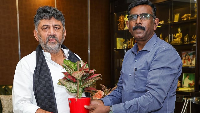 ಶನಿವಾರ ಸದಾಶಿವನಗರದಲ್ಲಿ ಉಪಮುಖ್ಯಮಂತ್ರಿ ಡಿ ಕೆ ಶಿವಕುಮಾರ್ ಅವರನ್ನು ಭೇಟಿ ಮಾಡಿದ ಮಣಿವಣ್ಣನ್ ಅವರಿಗೆ ಡಿಸಿಎಂ ಶುಭ ಹಾರೈಸಿದರು.
