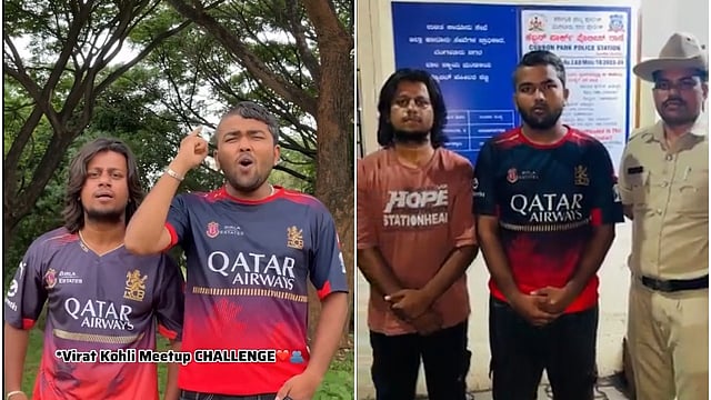 ಬೆಂಗಳೂರು: ರಾಯಲ್ ಚಾಲೆಂಜರ್ಸ್ ಬೆಂಗಳೂರು ಮತ್ತು ಕೋಲ್ಕತ್ತಾ ನೈಟ್ ರೈಡರ್ಸ್ ನಡುವಿನ ಶನಿವಾರದ ಐಪಿಎಲ್ ಪಂದ್ಯದ ಸಮಯದಲ್ಲಿ ವಿರಾಟ್ ಕೊಹ್ಲಿಯನ್ನು ತಬ್ಬಿಕೊಳ್ಳುವುದಾಗಿ ಸವಾಲು ಹಾಕಿದ್ದ ಇಬ್ಬರು ರೀಲ್ಸ್ ಸ್ಟಾರ್ಸ್ ಗಳನ್ನು ಕಬ್ಬನ್ ಪಾರ್ಕ್ ಪೊಲೀಸರು ಬಂಧಿಸಿದ್ದಾರೆ.