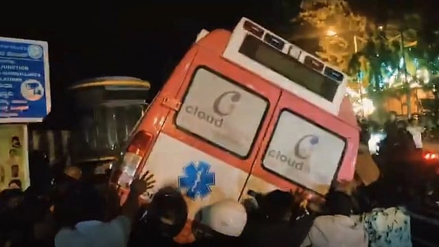 ಯಾವುದೇ ರೋಗಿಗಳು ಇಲ್ಲದಿದ್ದರೂ ರಿಚ್ಮಂಡ್ ಸರ್ಕಲ್ ಕಡೆಯಿಂದ ಅತಿ ವೇಗವಾಗಿ ಬಂದ ಆಂಬುಲೆನ್ಸ್ ಡಿಕ್ಕಿ ಹೊಡೆದು ಬೈಕ್ ಅನ್ನು 50 ಮೀಟರ್ ದೂರ ಎಳೆದೊಯ್ದಿದೆ.