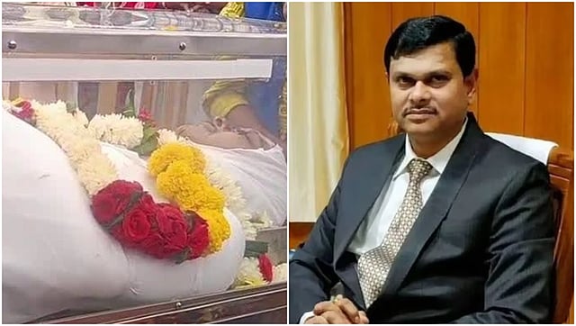 ಈ ವೇಳೆ ಪೊಲೀಸ್ ಸಿಬ್ಬಂದಿ ಗಾಳಿಯಲ್ಲಿ ಮೂರು ಸುತ್ತು ಗುಂಡು ಹಾರಿಸಿ ಸರ್ಕಾರಿ ಗೌರವ ಸಲ್ಲಿಸಿದರು.