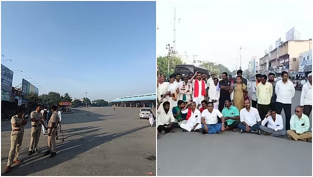 ನಗರದ ಕೇಂದ್ರ ಬಸ್ ನಿಲ್ದಾಣದ ಬಳಿ ಬೆಳ್ಳಂಬೆಳ್ಳಗೆ ನೂರಾರು ರೈತರು ಜಮಾವಣೆಗೊಂಡು ಕೇಂದ್ರ ಮತ್ತು ರಾಜ್ಯ ಸರ್ಕಾರಗಳ ವಿರುದ್ಧ ಘೋಷಣೆ ಕೂಗಿದರು.