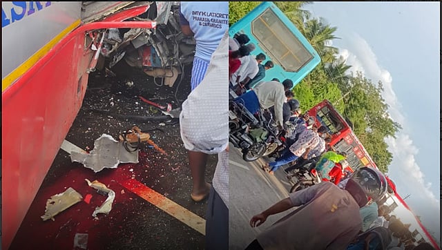 ಮೊದಲು ಎರಡು ಬಸ್ಗಳ ನಡುವೆ ಮುಖಾಮುಖಿ ಡಿಕ್ಕಿ ಸಂಭವಿಸಿದೆ. ಅಪಘಾತಕ್ಕೀಡಾಗಿ ನಿಂತಿದ್ದ ಬಸ್ಗೆ ಮತ್ತೊಂದು ಬಸ್ ಡಿಕ್ಕಿ ಹೊಡೆದಿದೆ. ಪರಿಣಾಮ ಬಸ್ಸಿನಲ್ಲಿದ್ದ ಪ್ರಯಾಣಿಕರು ಗಾಯಗೊಂಡಿದ್ದಾರೆ.