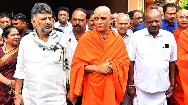 ನಿರ್ಮಲಾನಂದನಾಥ ಶ್ರೀಗಳ ನೇತೃತ್ವದಲ್ಲಿ ನಡೆದ ಸಭೆಯಲ್ಲಿ ಮೂರು ಪಕ್ಷಗಳ ನಾಯಕರು ಭಾಗಿಯಾದರು. ಕೇಂದ್ರ ಸಚಿವ ಹೆಚ್ಡಿ ಕುಮಾರಸ್ವಾಮಿ, ಡಿಸಿಎಂ ಡಿಕೆ ಶಿವಕುಮಾರ್, ಅಶ್ವತ್ಥ್ ನಾರಾಯಣ್, ಆರ್.ಅಶೋಕ್, ಮಾಜಿ ಸಿಎಂ ಡಿ.ವಿ.ಸದಾನಂದಗೌಡ, ಕೇಂದ್ರ ಸಚಿವೆ ಶೋಭಾ ಸೇರಿದಂತೆ ಪ್ರಮುಖರು ಭಾಗಿಯಾದರು. ಸುದೀರ್ಘ ಚರ್ಚೆ ಮೂಲಕ ಮಹತ್ವದ ನಿರ್ಧಾರವನ್ನೂ ಕೈಗೊಳ್ಳಲಾಯಿತು.