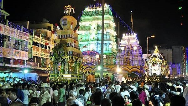 ನಗರದ ಧರ್ಮರಾಯಸ್ವಾಮಿ ದೇವಸ್ಥಾನದಿಂದ ಮಧ್ಯರಾತ್ರಿಯ ನಂತರ ಮಹಾರಥೋತ್ಸವ ಹೊರಟ ಕೂಡಲೇ ಗರ್ಭಗುಡಿಯಿಂದ ದ್ರೌಪದಿ ದೇವಿಯ ಕರಗ ಮೆರವಣಿಗೆ ಆರಂಭವಾಯಿತು. ಈ ವೇಳೆ “ಗೋವಿಂದಾ... ಗೋವಿಂದಾ...” ಎಂಬ ನಾಮಸ್ಮರಣೆಯೊಂದಿಗೆ ಸಾಗಿದ ಕರಗದ ದರ್ಶನ ಪಡೆದು ಭಕ್ತರು ಪುನೀತರಾದರು.