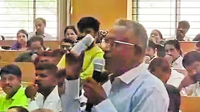 “ಇನ್ನೂ ಸಮಸ್ಯೆ ಬಗೆಹರಿಸಲಿಲ್ಲದಿದ್ದರೆ ವಿಷ ಕುಡಿಯುತ್ತೇನೆ” ಎಂದು ಕೂಗುತ್ತಾ ಕೈಯಲ್ಲಿ ಹಿಡಿದಿದ್ದ ಬಾಟಲಿಯನ್ನು ಸಚಿವರಿಗೆ ತೋರಿಸಿದರು.