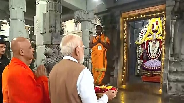 ಮಂಡ್ಯ: ಪ್ರಧಾನಮಂತ್ರಿ ನರೇಂದ್ರ ಮೋದಿ ಅವರು ಮಂಡ್ಯ ಜಿಲ್ಲೆಯ ಆದಿಚುಂಚನಗಿರಿ ಮಠಕ್ಕೆ ಇಂದು ಭೇಟಿ ನೀಡಿ ಶ್ರೀ ಗುರು ಭೈರವೈಕ್ಯ ಮಂದಿರವನ್ನು ಲೋಕಾರ್ಪಣೆಗೊಳಿಸಿದ್ದಾರೆ. ಬಾಲಗಂಗಾಧರನಾಥ ಸ್ವಾಮಿಗಳ ಗದ್ದುಗೆಯ ಸ್ಥಳದಲ್ಲಿ ನಿರ್ಮಿಸಲಾಗಿರುವ ಈ ಭವ್ಯ ದೇಗುಲವನ್ನು ಪ್ರಧಾನಿಗಳು ಉದ್ಘಾಟಿಸಿ, ಸ್ವಾಮಿಗಳ ಮೂರ್ತಿಗೆ ಪೂಜೆ ಸಲ್ಲಿಸಿದರು.