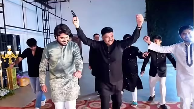 ಮದುವೆ ಕಾರ್ಯಕ್ರಮದಲ್ಲಿ ಸಂಗೀತದ ನಡುವೆಯೇ ಗನ್ ಹಿಡಿದು ವೇದಿಕೆಯ ಮೇಲೆ ಕುಣಿದಿರುವುದು ಹಾಗೂ ಕೆಲವರು ಅವರೊಂದಿಗೆ ಫೋಟೋ ಮತ್ತು ವೀಡಿಯೊಗಳನ್ನು ತೆಗೆದುಕೊಂಡಿರುವ ದೃಶ್ಯಗಳು ಸಾಮಾಜಿಕ ಜಾಲತಾಣಗಳಲ್ಲಿ ಹರಡುತ್ತಿವೆ.