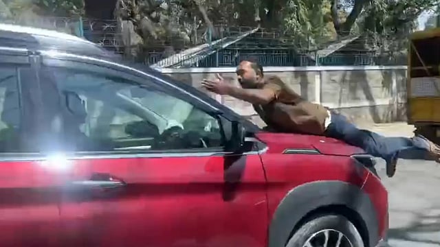 ಹಲಸೂರು ಪ್ರದೇಶದಲ್ಲಿ ಸರಕು ಸಾಗಣಿಕಾ ವಾಹನ ಮತ್ತು ಎಸ್ಯುವಿ ವಾಹನಗಳು ಟಚ್ ಆಗಿದ್ದು, ಈ ವೇಳೆ ಯಾವುದೇ ಹಾನಿಯಾಗಿಲ್ಲದಿದ್ದರೂ, ಇಬ್ಬರು ಚಾಲಕರು ಪರಸ್ಪರ ತೀವ್ರ ವಾಗ್ವಾದ ನಡೆದಿದೆ. ವಾಗ್ವಾದ ಹೆಚ್ಚುತ್ತಿದ್ದಂತೆ, ಸರಕು ವಾಹನದ ಚಾಲಕ ಕಾರಿನ ಬಾನೆಟ್ ಮೇಲೆ ಹತ್ತಿ ಕಾರು ಹೋಗುವುದನ್ನು ತಡೆದಿದ್ದಾನೆ. ಈ ವೇಳೆ ಆಕ್ರೋಶಗೊಂಡ ಎಸ್ಯುವಿ ಚಾಲಕ ಆ ವ್ಯಕ್ತಿಯನ್ನು ಎಳೆದೊಯ್ದಿದ್ದಾನೆ.